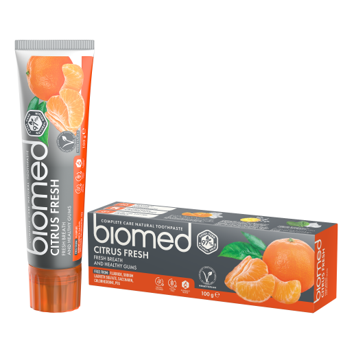 - Svaka Biomed vodica za usta sadrži 98-99% prirodnih sastojaka i pruža učinkovitu oralnu njegu. Specijalne četkice za zube s ionima srebra u vlaknima savršene su za učinkovito čišćenje zubi.