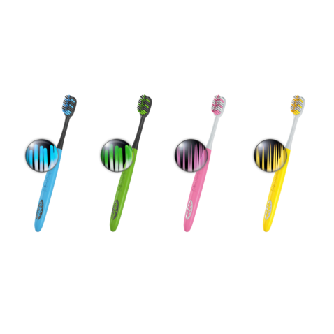Čestice s ugljenom prašinom pomažu u učinkovitom uklanjanju plaka. Zaobljeni krajevi čekinja čine proces čišćenja zubi sigurnim i ne oštećuju desni. Posebno oblikovana glava omogućuje jednostavan i brz pristup zubima za žvakanje radi učinkovitog čišćenja.