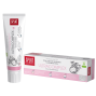 Aqua, Hydrogenated Starch Hydrolysate, Hydrated Silica, PEG-8, Sodium Coco-Sulfate, Cellulose Gum, Aroma, Sodium Bicarbonate, Potassium Nitrate, Calcium Lactate, CI 77891, Zinc Citrate, Sodium Methylparaben, PVP, Hydroxyapatite, Sodium Saccharin, Bisabolol, Papain, Limonene. Fluoride free.